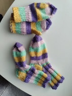 Noin 1-2v sopivat värikkäät villasukat ja tumput, villasukan pohjan pituus noin 13cm