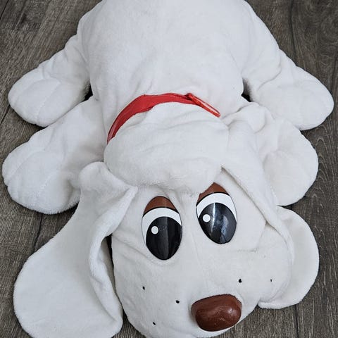 Koira pehmolelu jouluasussa