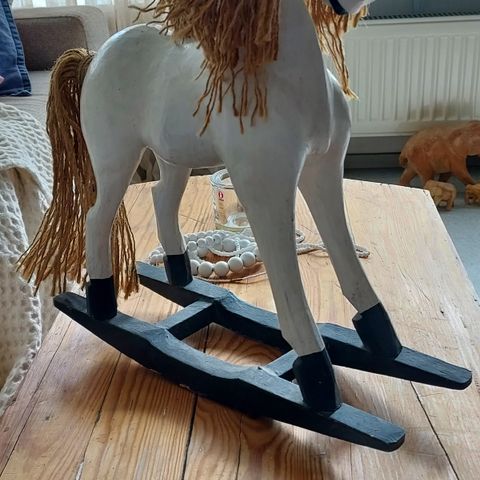 Käsinveistetty puuhevonen.