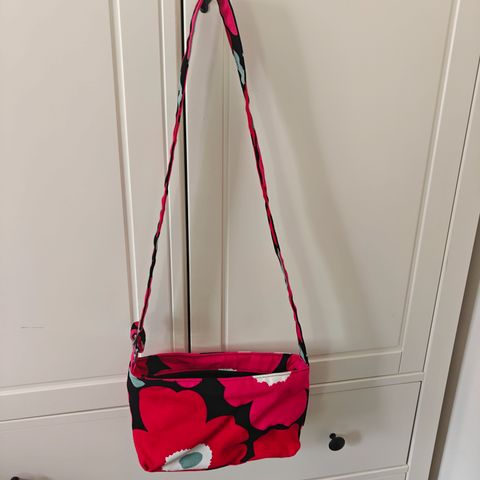 Siisti laukku.Sisällä vetoketjullinen sivutasku sekä kaksi avotaskua