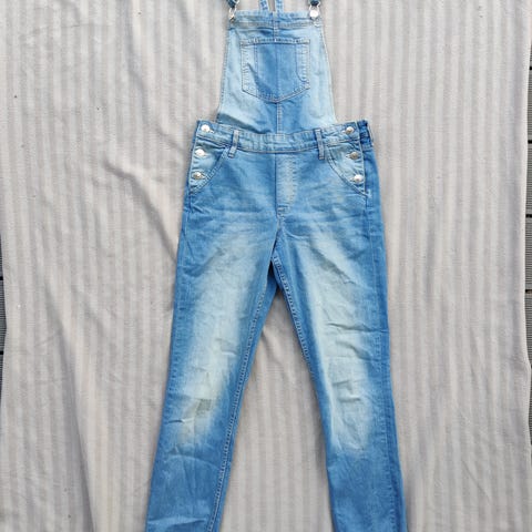 Uudet farkkuhaalarit revityt kapealahkeiset XS 34 joustavaa denimiä