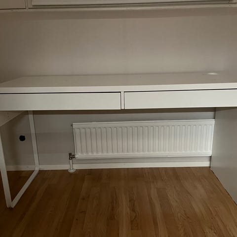 Annetaan valkoinen Ikean Alex-työpöytä. Nouto Hki Punavuori. Pöytä on ehjä, tukeva ja täysin toimiva mutta käytönjälkeä on reilusti.