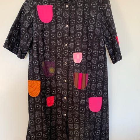Käyttämätön Marimekon taskumekko, tummansinininen, koko=160cm