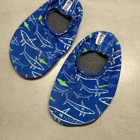 Slipstop koko 18-20, pohjan mitta 12,5cm. Ehjät. Isovarpaiden kohdalla vii nähdä ihan hiukan haalistumaa.