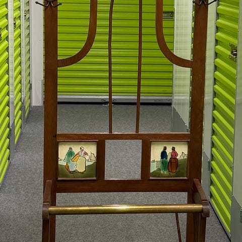 Myydään puuta ja metallia oleva funkkis-tyylinen naulakko.