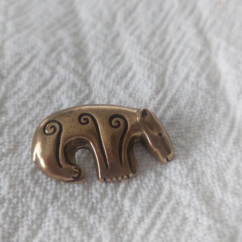 Kalevala Korun pronssinen riipus/rintaneula ”Kalevan Karhu”, jonka on suunnittelut Kaisaleena Mäkelä.