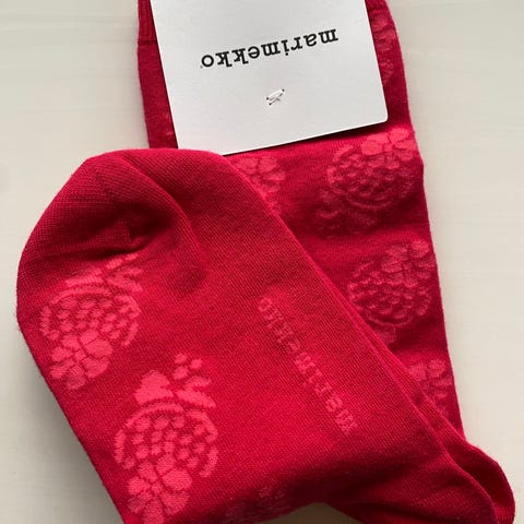 Marimekko Greippi, hedelmä sukat 37-39, punainen/vaaleanpunainen, uudet ja käyttämättömät.