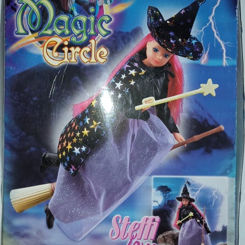 Hyväkuntoinen nukkepaketti sis. ensimmäisen kuvan Simba Toys nuket 3 kpl sekä huonekaluja ja pari vaatetta esim. Barbie-leikkeihin. Kaikki nivelet toimivat. Kaappien korkeus noin 17cm ja pöntön noin 9cm.