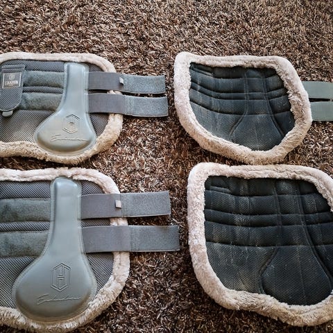 Muutaman kerran käytetyt laadukkaat Eskadronin valkoiset koulusuojat, toiset kokoa full ja toiset xfull.