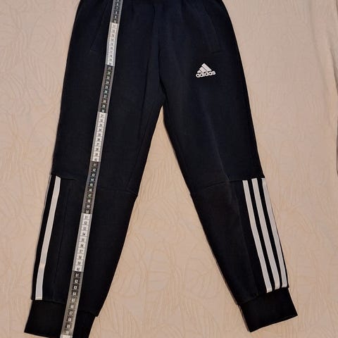 Adidas lasten housut, koko 128, vaaleanpunainen väri. Housuissa on joustava vyötärö ja kiristysnyöri lahkeensuissa. Voi pitää myös leveillä lahkeilla. Materiaali on pehmeää ja mukavaa velouria.