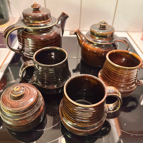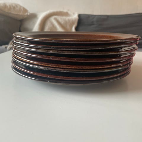6kpl ruskeita keskikokoisia Arabian lautasia pullalautanen / leipälautanen
