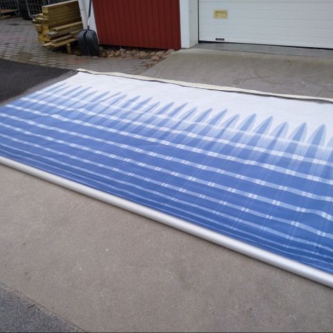Viime kesänä ostettu ja pari kertaa avattu. Värinä mystic Grey. 5.5mx2.5m.
