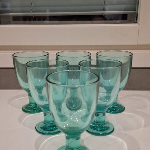 8kpl Iittala Verna vihreä jalallinen juomalasi, korkeus 13,5 cm, halkaisija 8 cm.