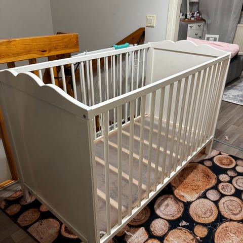 Vauvansänky hyvässä kunnossa. Hieman käytön jälkiä. Patjaa on aina käytetty suojalakanan kanssa.