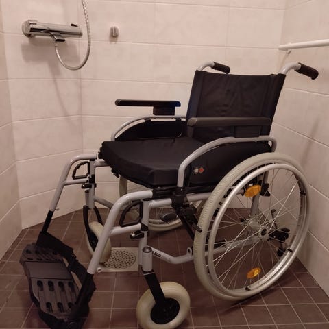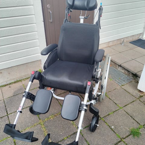 Myynnissä uudenveroinen, tukeva B&B peruspyörätuoli. Kasaantaitettava, ylös nostettavat käsinojat ja irrotettavat sekä käännettävät jalkatuet, lisäksi takana asennettuna kaatumisesteet. Kantavuus 125 kg, istuinleveys 46 cm, paino 18,2 kg ( taitettuna 29 cm ) . Soveltuu sisä- ja ulkokäyttöön. Kevyt ja helposti siirrettävä malli.