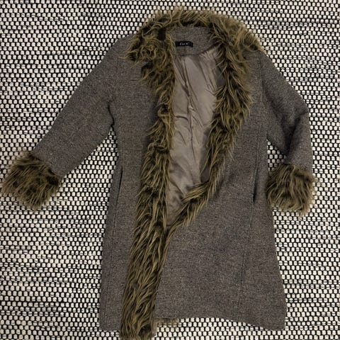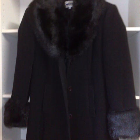 Puolipitkä villakangastakki tekoturkis kauluksella. Kunto kuin uusi. Koko 40