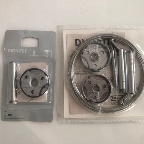 IKEA DIGNITET verhovaijerin tuki-/kulmaosa, ruostumaton teräs. Kolme paketissaan, yksi käyttämätön paketista avattu ja kasattu. Todettu vääräksi.