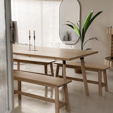 Pöydän molemmille sivuille mahtuu 4 tuolia ja päätyihin yhdet, eli kooltaan 6-10 hlön pöytä. Syvyys 240 cm, leveys 90 cm ja korkeus 74 cm.