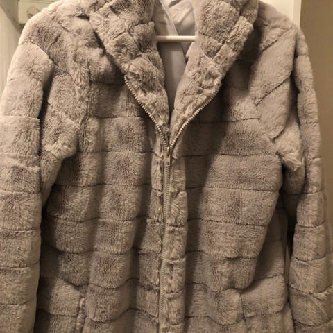 Hopeanharmaa tekoturkis-jakku hakas-kiinnityksellä