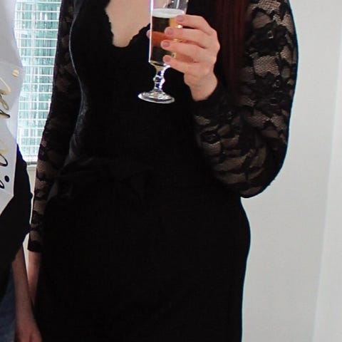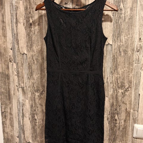 Käyttämättä jäänyt kuminauhavyötäröinen hame, jossa kaunis pitsikerros ja alla musta trikoinen alushame.