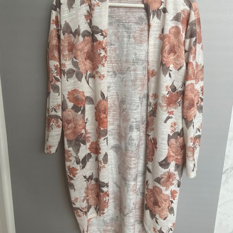 Käytetty muutaman kerran, aavistuksen verran nukkaa (esimerkki näkyy kuvassa), mutta muuten erittäin siistissä kunnossa. Koko on one size. Pituus olka-helma n. 65,5 cm, kainalo-helma 41 cm ja mitta kainalosta kainaloon n. 55 cm (selästä mitattuna). 75% akryylia, 15% polyamidia.