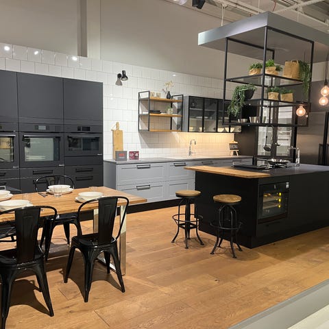 Uusi käyttämätön AEG (CCK84543CB)keittolevy, jossa integroitu liesituuletin.