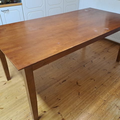 Lasikannessa naarmuja ja pöydän jaloissa muutama jälki.