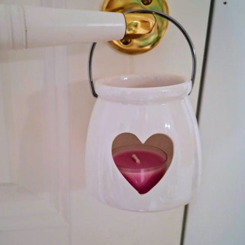 Keraaminen lyhty, korkeus 8 cm, aukko ylhäältä 7 cm. Etenkin tuoksukynttilöille hyvä.