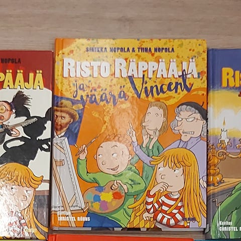 Risto Räppääjä on kirjaston poistokirja. Kaksi muuta on ostettu uutena.