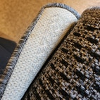 Siisti Jysmä- matto, pitävällä pohjalla. Pesulan jäljiltä. Reunassa osittain auennutta kudetta (kuva).