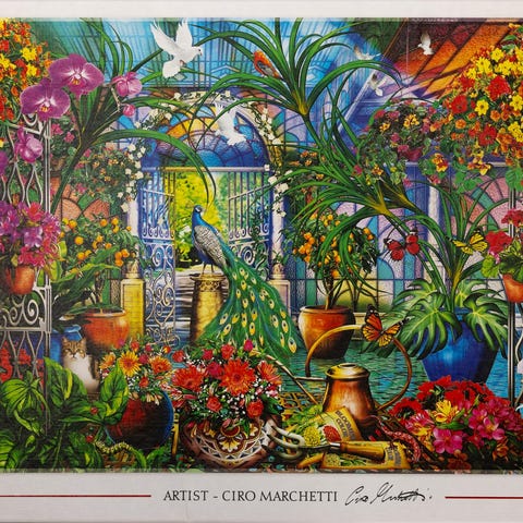 Trefl palapeli 1500 palaa, jossa on viinirypäleiden, viinilasien ja juustojen kuva. Koko 85x58 cm, kaikki palat tallella.
