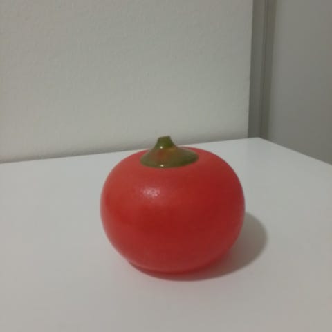 Punainen lasiomena, korkeus n. 8 cm, omenan halkaisija n. 6,5 cm. Nouto Lauttasaaresta. Postitus onnistuu postimaksuja vastaan.
