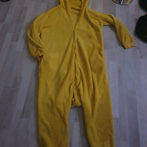 Mallin pituus on 169 cm, ja hänellä on yllään Pikachu-haalari. Haalari on hieman pientä mitoitusta ja sopii parhaiten henkilölle, jonka pituus on noin 160–165 cm.