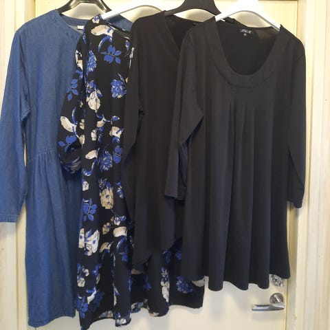 Uusi, käyttämätön tunika, holkkihihat, hopeinen helavyö ja puuko printi edessä ja takana. Helma pyöristetty.