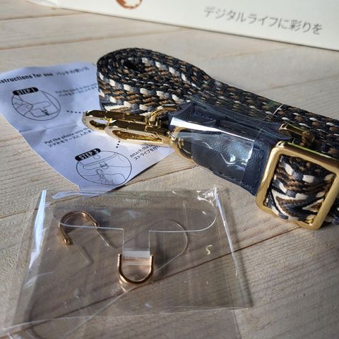 Hihna laukkuun, 120cm, luonnonvalkoinen/sininen/hopea/vaaleansininen, kullanväriset metalli-osat. Uusi ja käyttämätön.