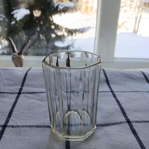 Käytetyt, mutta ehjät ja siistit juomalasit. Vähäistä käyttökulumaa. Suunnittelija Erkkitapio Siironen, valmistaja Riihimäen Lasi, valmistettu: 1979-1985. Lasin korkeus 9.5cm, suun, halkaisija 6,5cm.