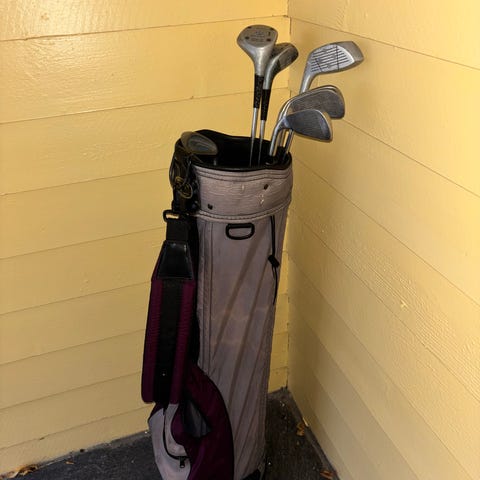 Golfmaila setti sisältäen useita mailoja eri tarkoituksiin sekä TopFliten kanto- golfbägi, jossa on useita taskuja ja kantohihnat. Setti soveltuu golfharrastukseen ja kuljetukseen kentällä.