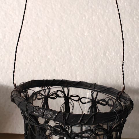Musta, metallinen tuikkulyhty.