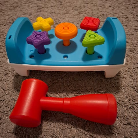 Fisher-Price hakka ja vasara lasten lelusetti. Yhden lapsen leikkimä. Hyväkuntoinen.