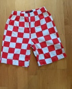 Marimekon punavalkoiset ruudulliset trikooshortsit 116cm.