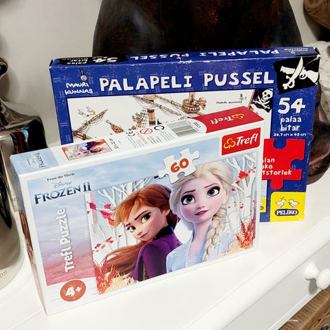 Mauri Kunnas 252 palapeli. Kuva Vampyyrivaarin tarinoita kirjasta. Tämän kanssa aika vierähtää mukavasti. Kunto käytetty hyvä, kahdessa palassa pientä osumaa, ei vaikuta palapelin kasaamiseen.