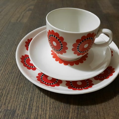 Arabia 70-luku kahvikupin tassi ja leipälautanen