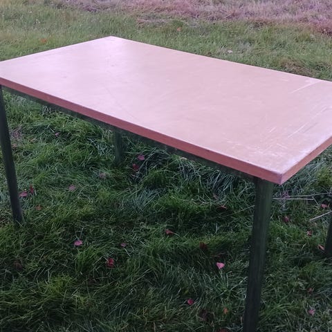 Myydään hyväkuntoinen koivun värinen pöytä. Pinnassa pari jälkeä, näkyy kuvissa. Tukeva metallirunko. Jalat on helppo kiinnittää kulmiin yhdellä pultilla.