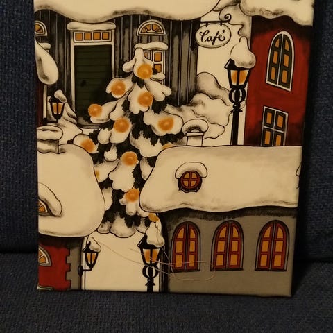 Myydään kaunis talvinen valotaulu. Toimii kolmella AA paristoilla . Taulun mitat: leveys 43cm ja korkeus 53 cm