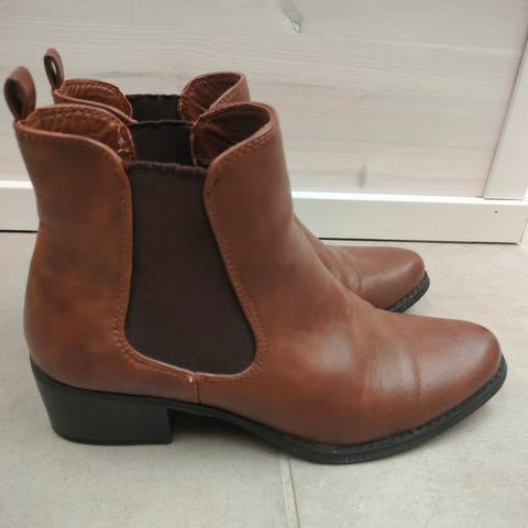 Naisten ruskeat mokkanahkaiset nilkkurit, koko 38. Nilkkureissa on vetoketju sivulla ja koristeellinen punottu remmi nilkan ympärillä. Todella vähäisellä käytöllä olleet, kunto kuin uusi. Toisen kengän kärjessä pieni tummempi piste. Voi lähteä puhdistamalla.