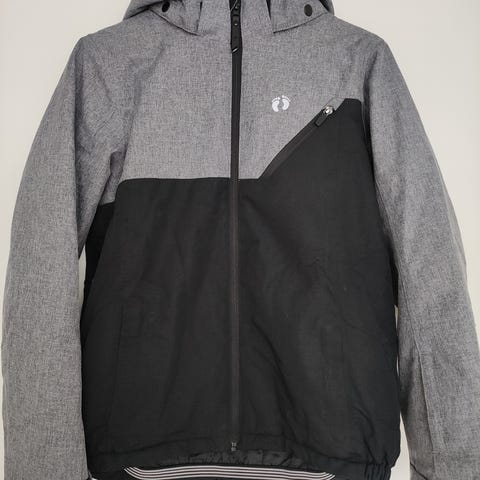 Hyvässä kunnossa oleva laskettelutakki. Vettä hylkivä, tuulen pitävä. Toppaus melko kevyt, eli ei sovellu todella kylmiin keleihin. Merkiltään tämä taitaa olla Ski industries.