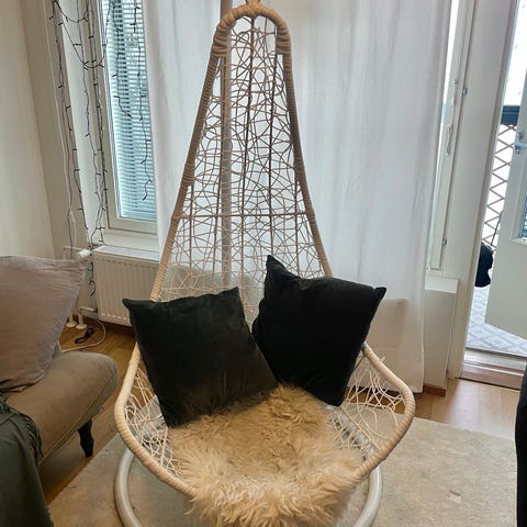 Myyntiin tilan puutteen vuoksi todella mukava ja siistissä kunnossa oleva riippu tuoli.