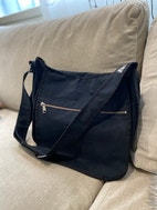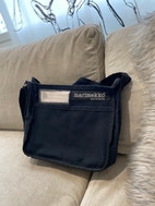 Musta vain vähän käytetty siisti urbaani olkalaukku Marimekko