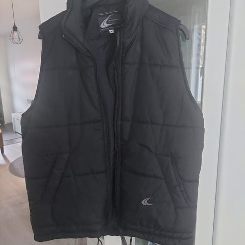 Hyvä kuntoinen miesten toppaliivi. Edessä vetoketju ja nepparit.