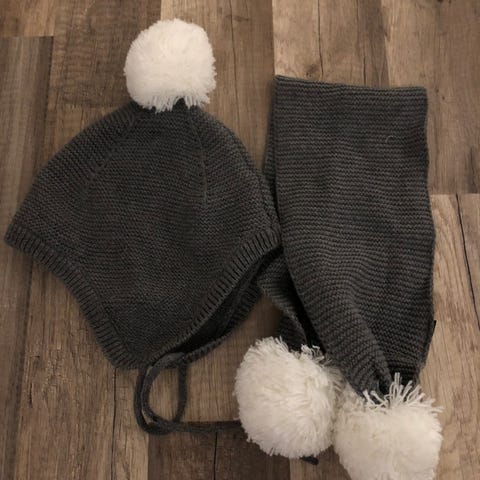 Pipo ja huivi/kauluri ilman lappua. Pipon ympärys on 34 cm (katso toisesta kuvasta).